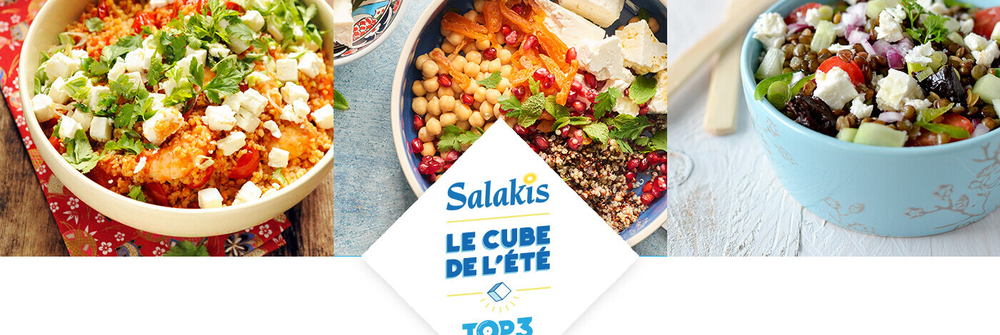 Idéales pour des repas complets, faciles et rapides à préparer, elles deviendront vite les refrains de votre été ! Des légumes, des légumineuses, des fruits, toutes les compositions sont permises et le fromage de brebis Salakis y apportera une touche de fraîcheur aux accents du Sud! Mixez et remixez ces recettes selon vos enviesss, faites évoluer leur composition au fil des saisons et jouez avec les assaisonnements en ajoutant épices ou herbes fraîches.